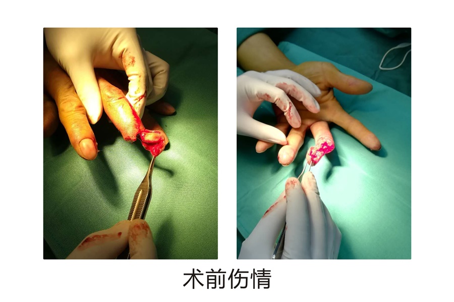 50岁的汪先生是某工厂的职工,10月3日15点50分,汪先生跟往常一样在工厂上班,一不留神,左手中指被皮轮带绞伤,瞬间伤口血流如注。“一开始感觉左手中指一阵麻,后来即感觉剧烈疼痛。同事马上帮我叫了救护车,当时我都有点绝望了,以为这手指毁了。”说起当时受伤的情形,汪先生的眼眶有点湿润。